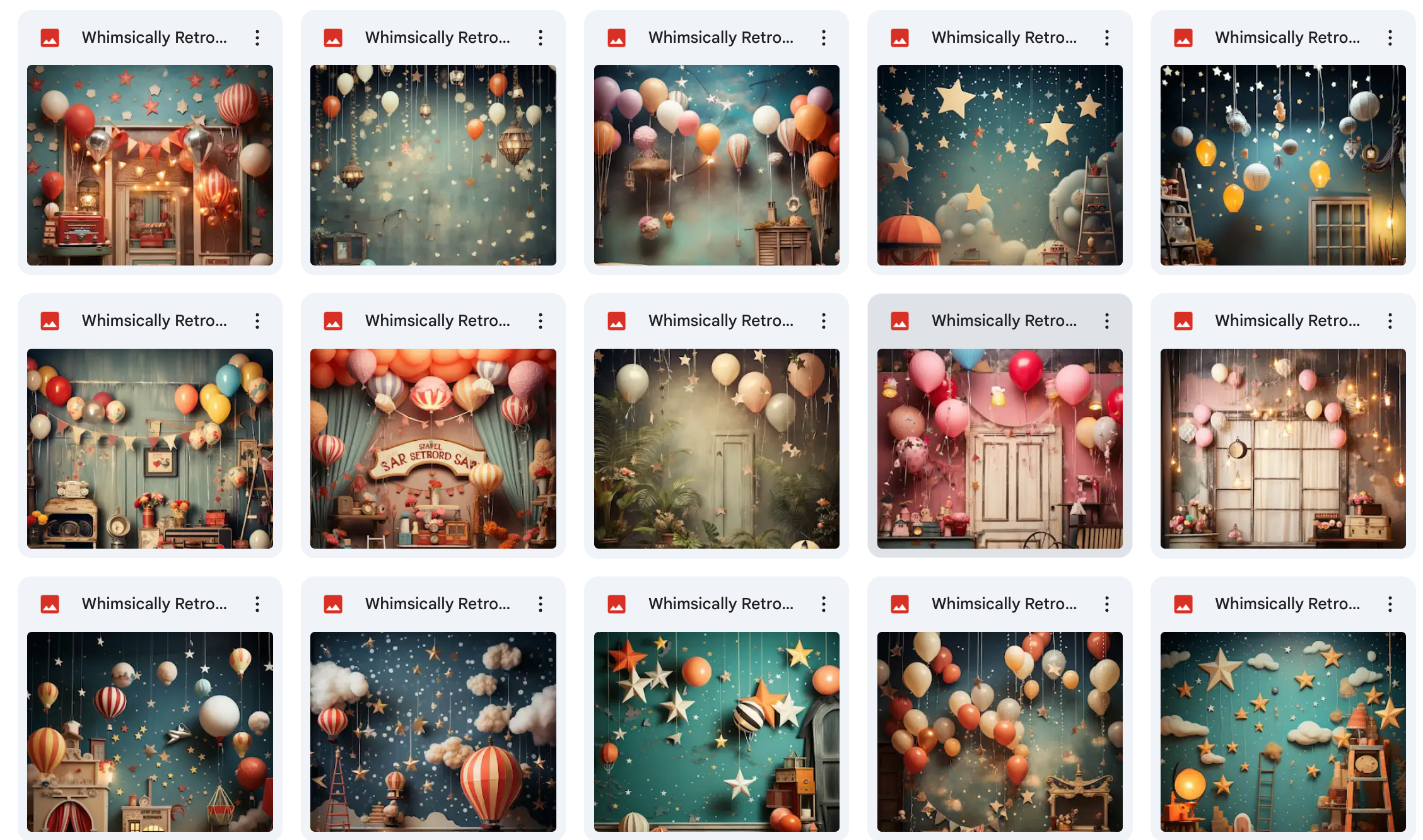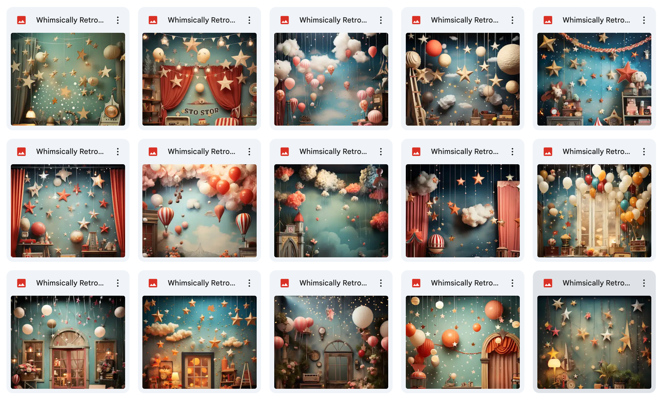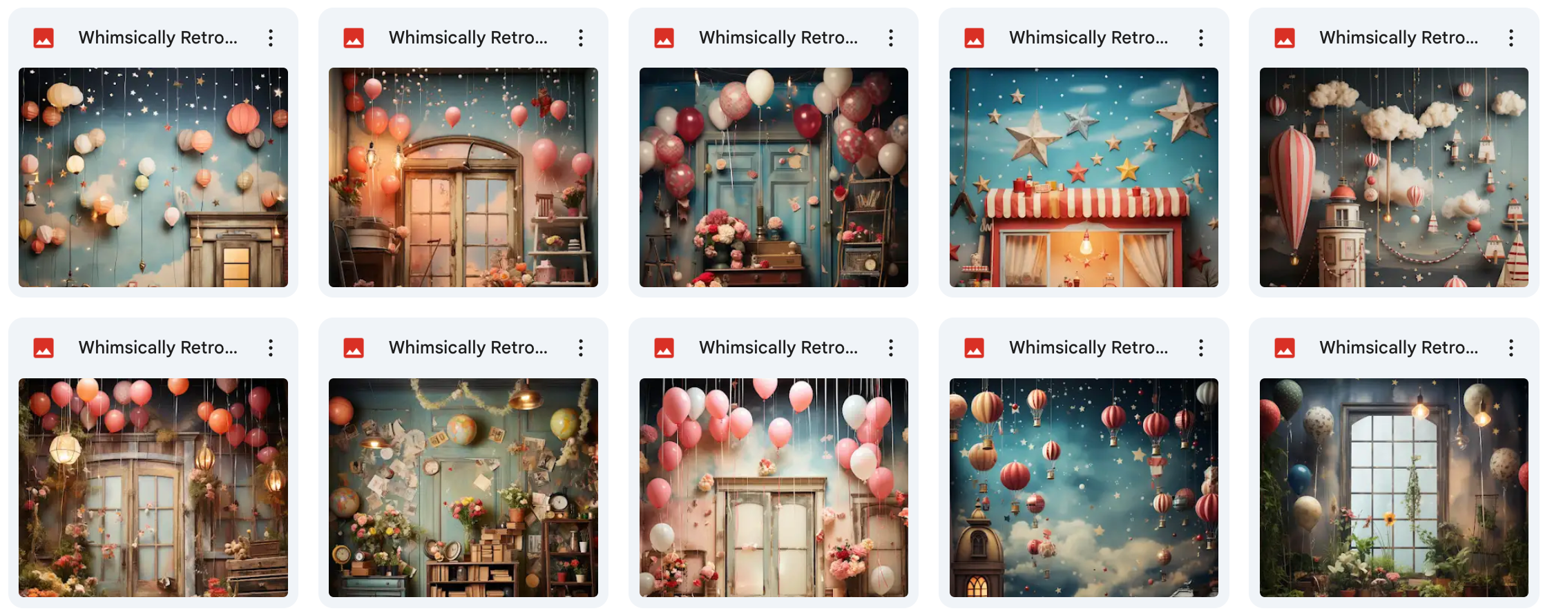 Step into a time warp of style with the Ultimate Whimsically Retro Studio Portrait Bundle! Immerse yourself in 100 hand-painted backdrops brimming with vintage charm, ready to transport your portraits to a bygone era of glamour, quirk, and playful nostalgia.