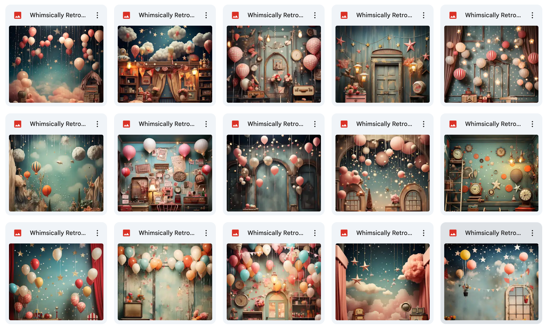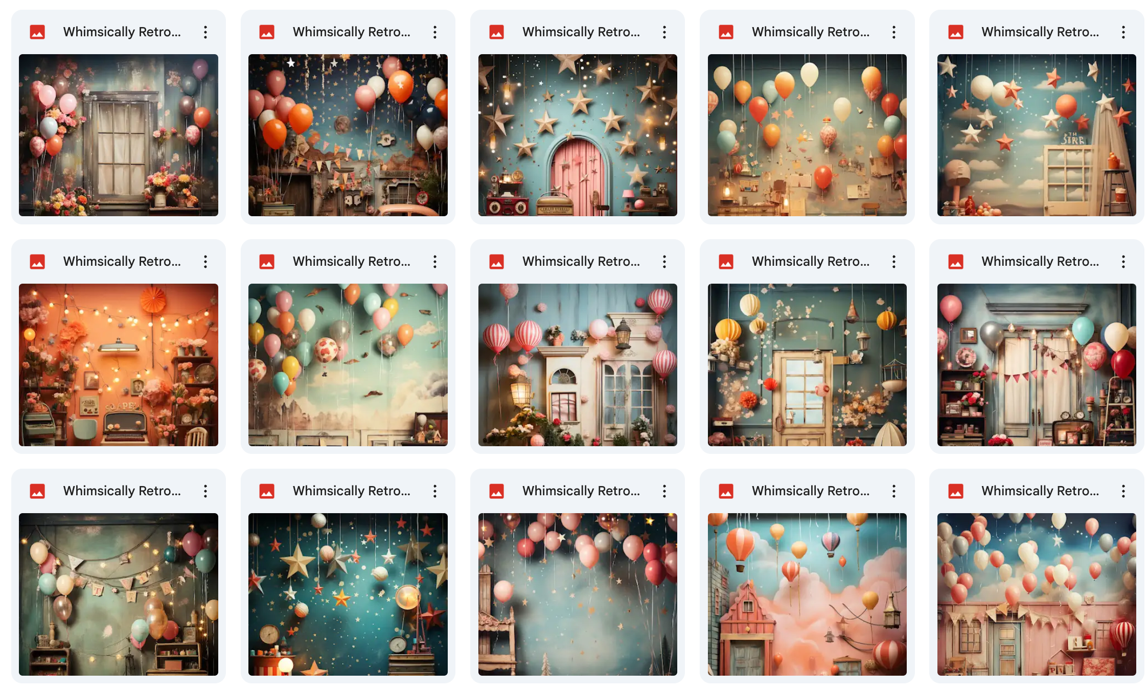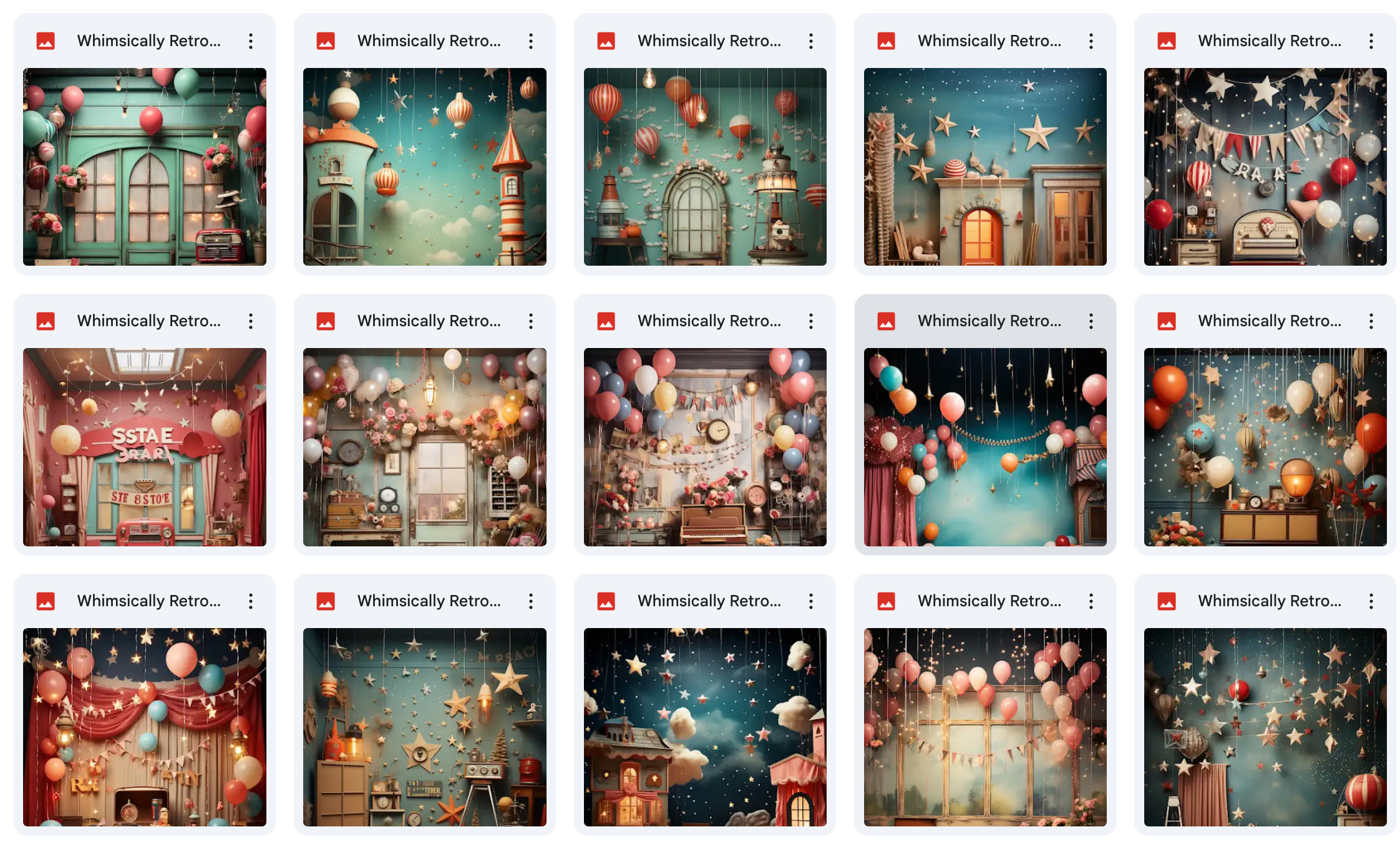 Step into a time warp of style with the Ultimate Whimsically Retro Studio Portrait Bundle! Immerse yourself in 100 hand-painted backdrops brimming with vintage charm, ready to transport your portraits to a bygone era of glamour, quirk, and playful nostalgia.