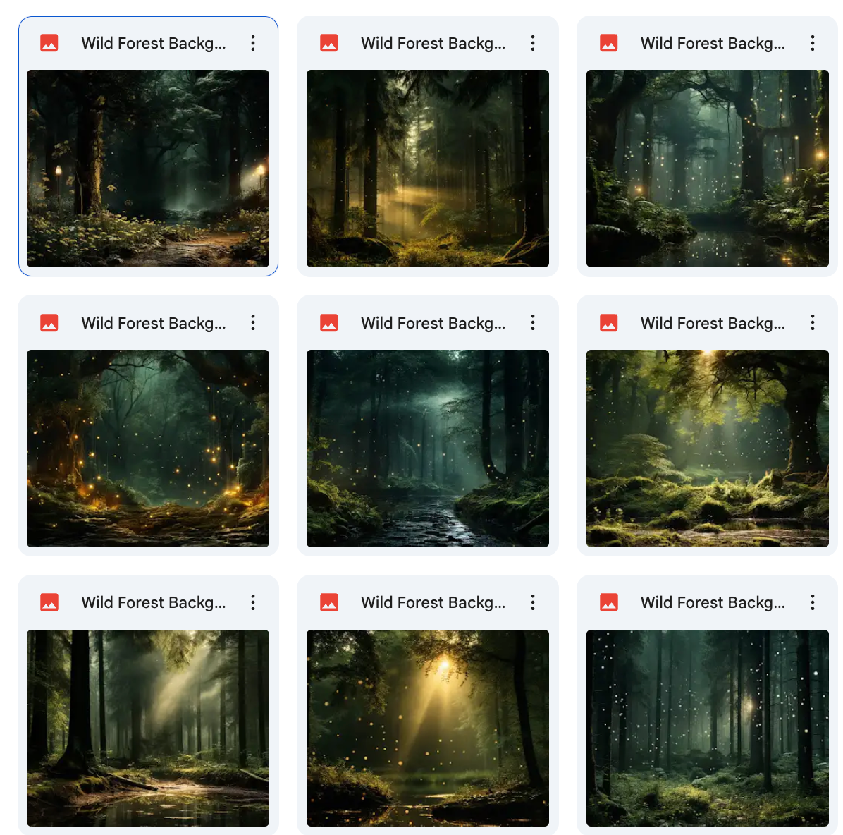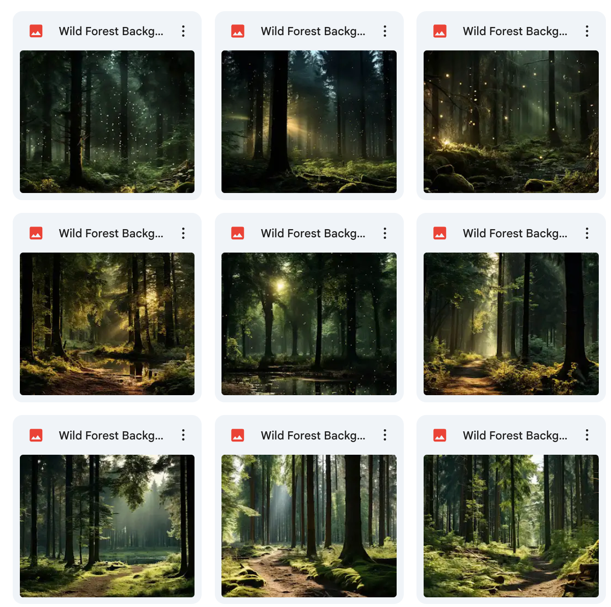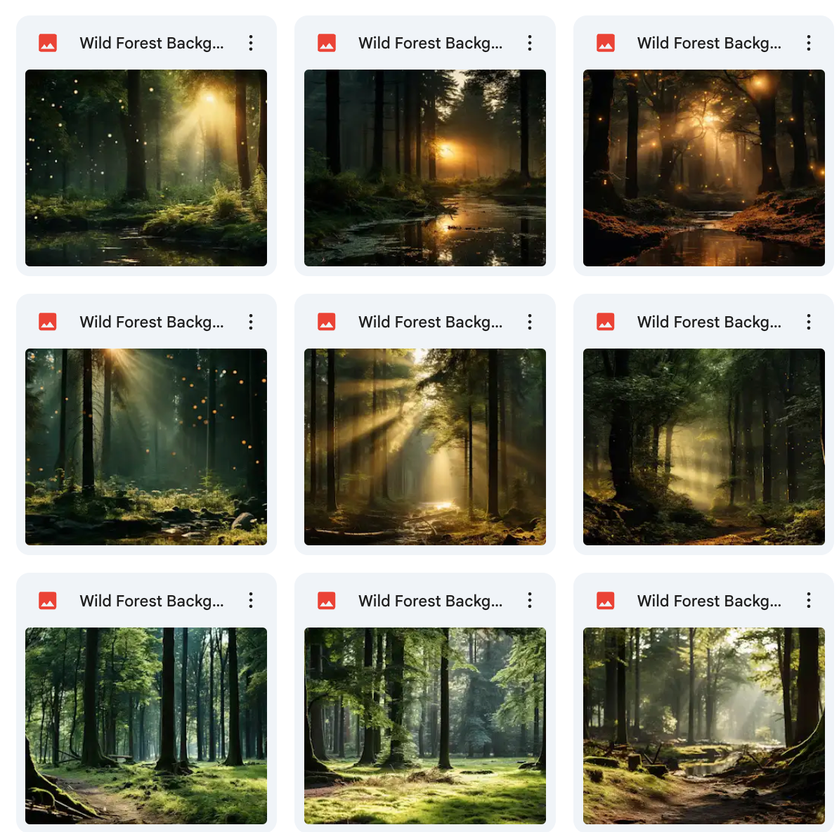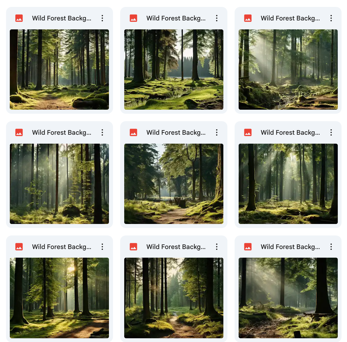 Wide Variety of Forests: Includes diverse environments such as misty woods, sunlit groves, and autumn foliage.