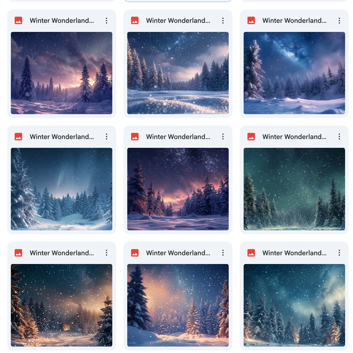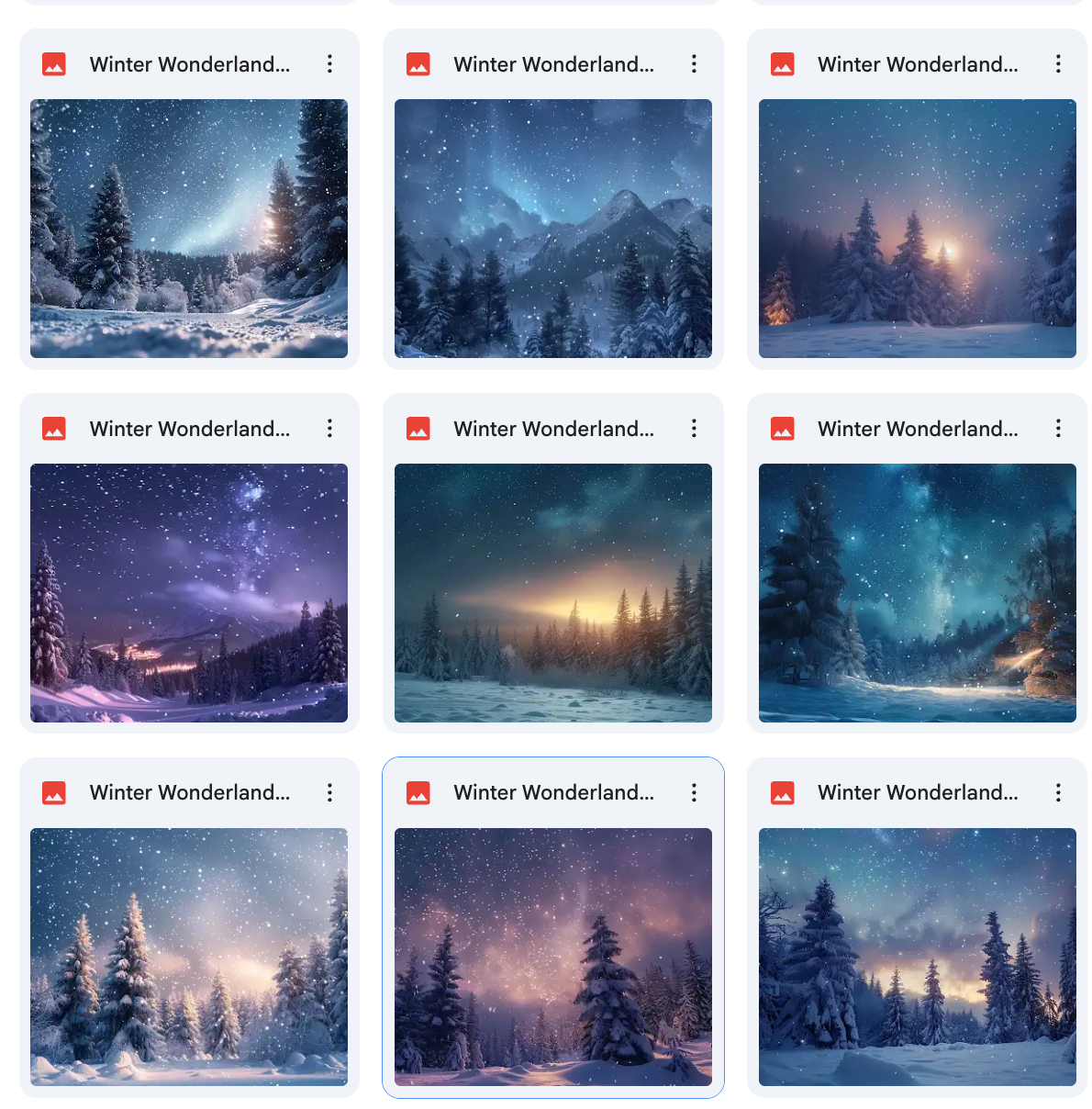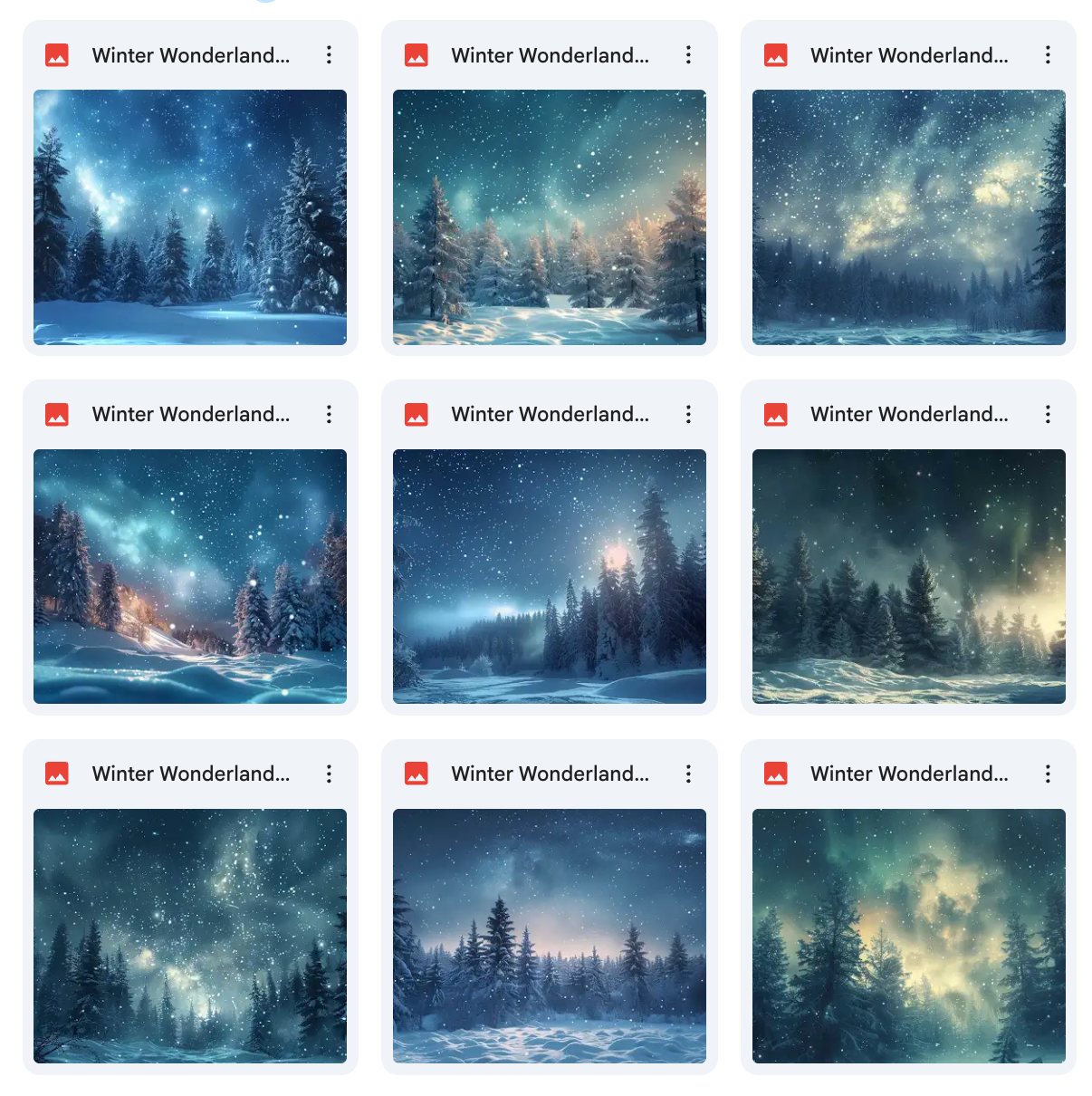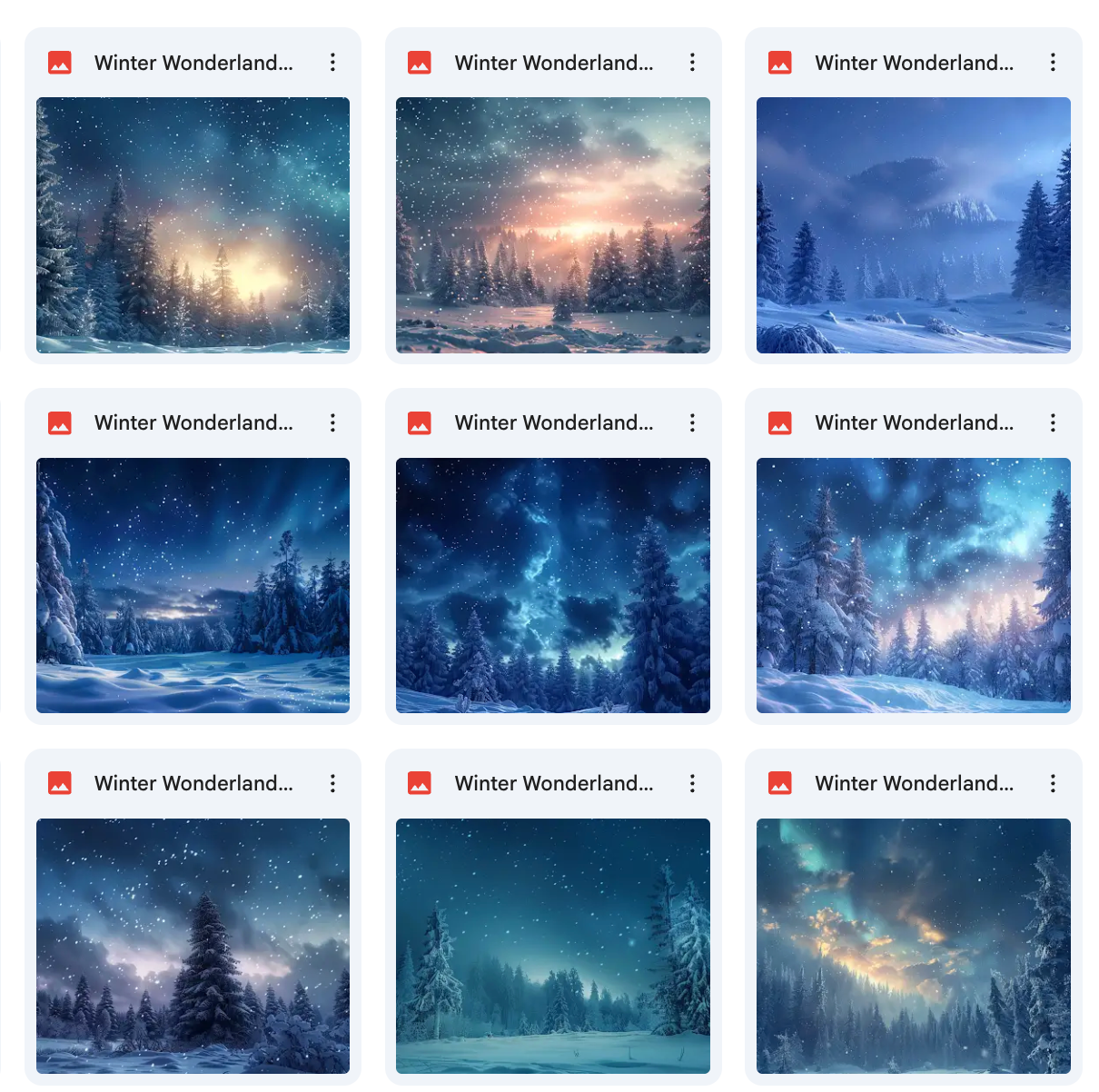 Varied Winter Scenes – Includes snowy woods, frosty rivers, and magical twilight landscapes.
