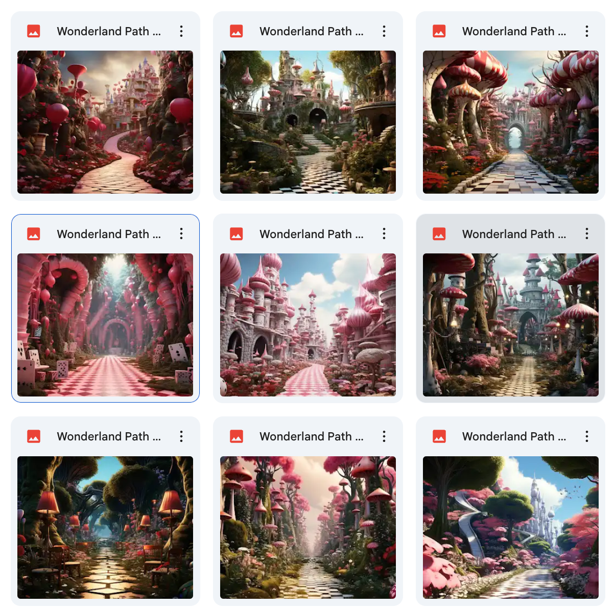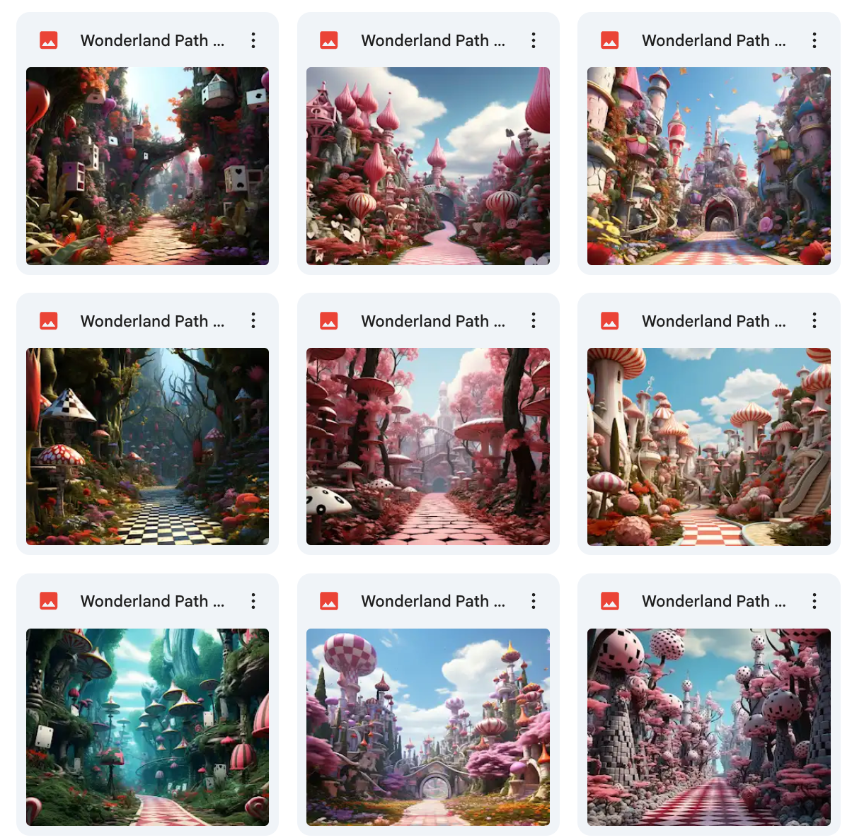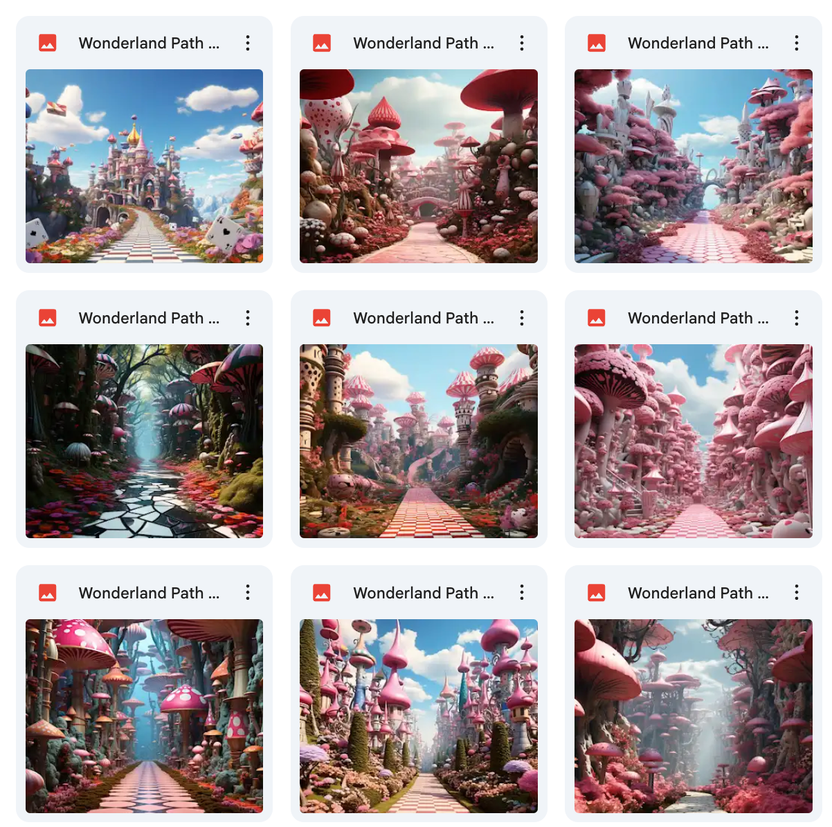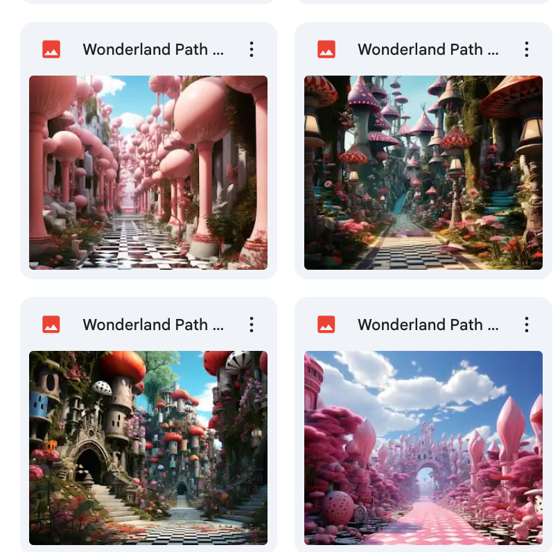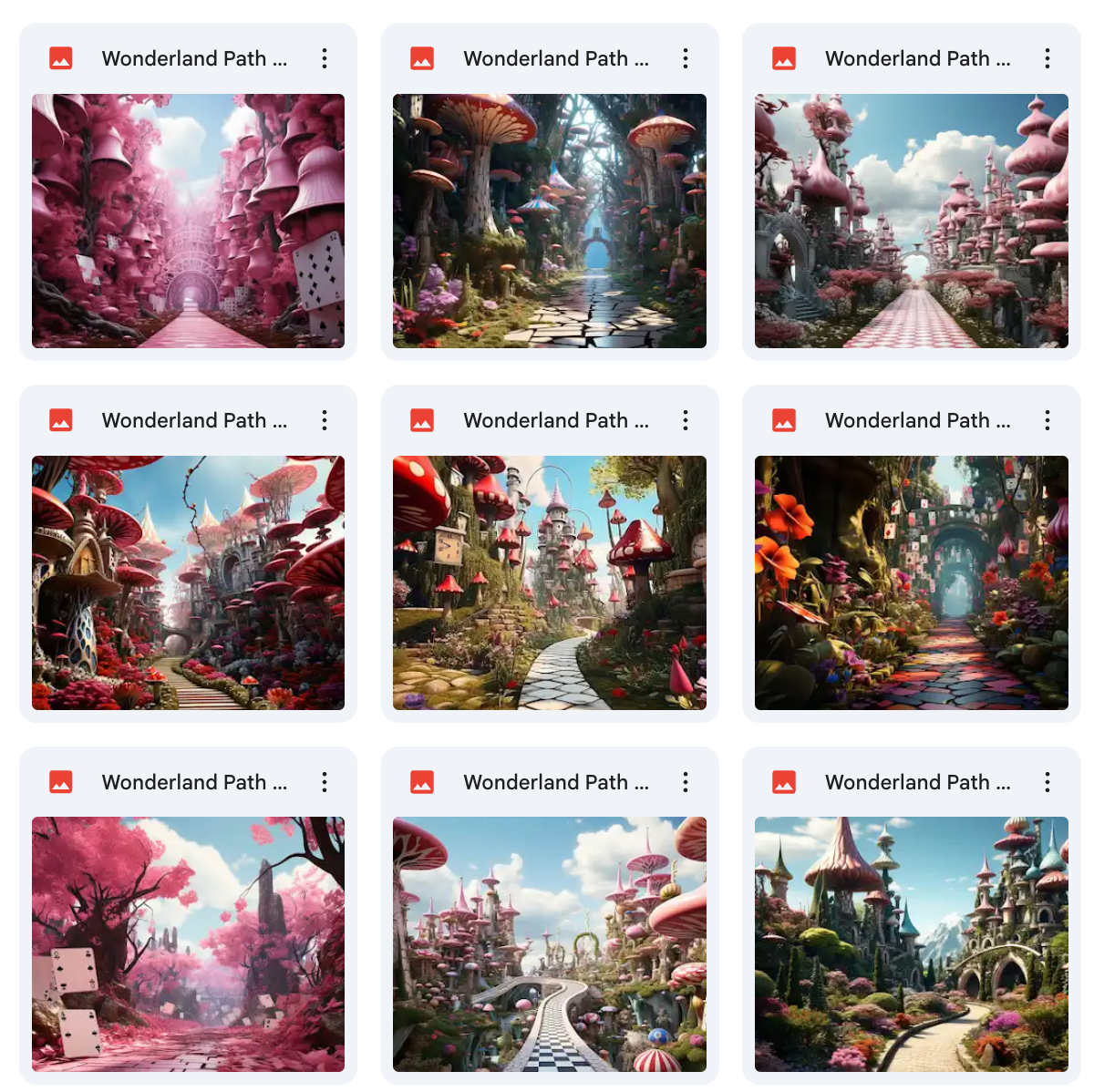 100 Unique Backgrounds: A diverse range of beautifully designed path backgrounds inspired by the whimsical aesthetic of Alice in Wonderland.