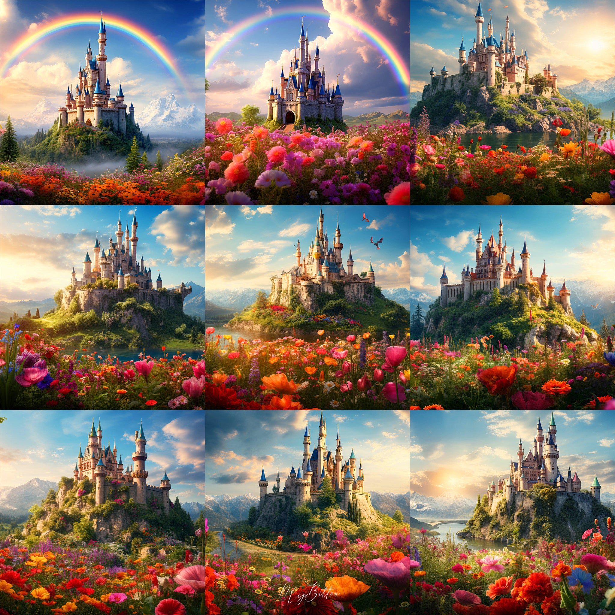 Transform your photos into magical creations with the Vibrant Castle Background Bundle. This unique collection features 9 high-resolution digital backgrounds, each depicting enchanting castle scenes with vivid colors and intricate details. Perfect for photographers and digital artists, these backgrounds instantly elevate any project with a touch of fantasy and elegance.