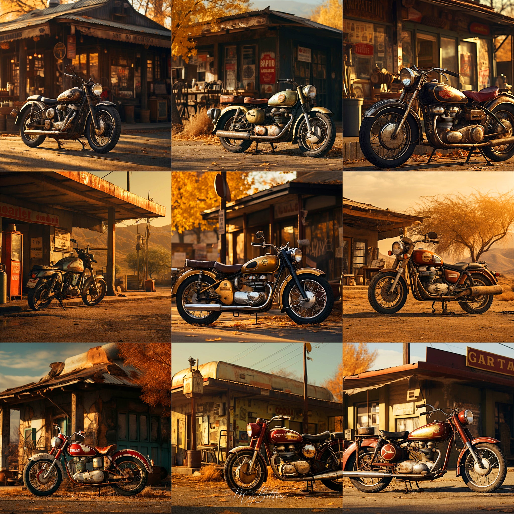 Discover the Vintage Motorcycle Background Bundle, featuring an exclusive collection of 9 meticulously designed digital backgrounds. Perfect for photographers, this bundle enhances your shoots with a nostalgic touch, bringing the timeless appeal of vintage motorcycles to your imagery. Elevate your portfolio with these captivating, theme-centric backdrops.