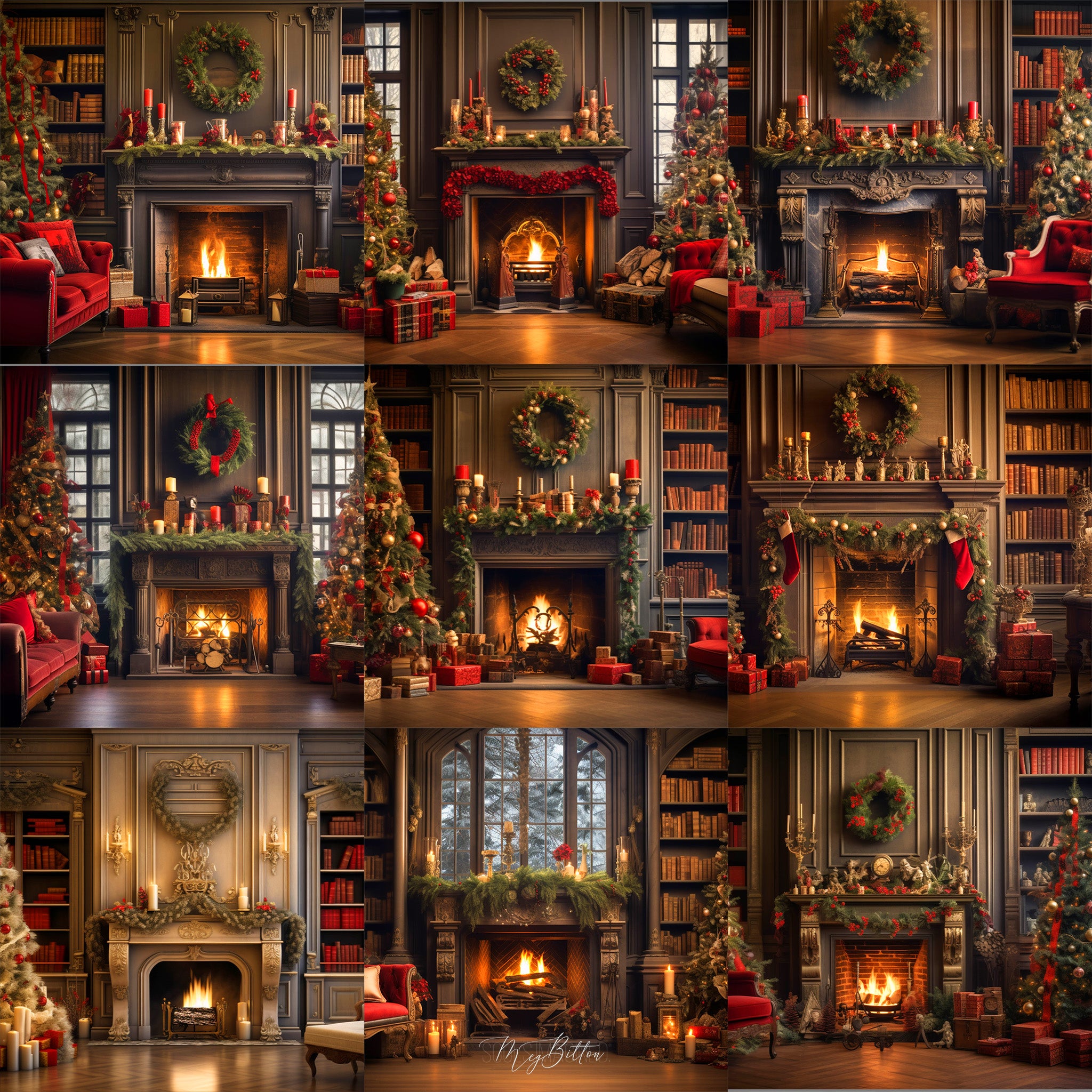 Variety of Scenes: From classic living rooms adorned with twinkling lights to charming fireplaces crackling with warmth, this bundle offers a range of scenes to suit different photography styles and client preferences.