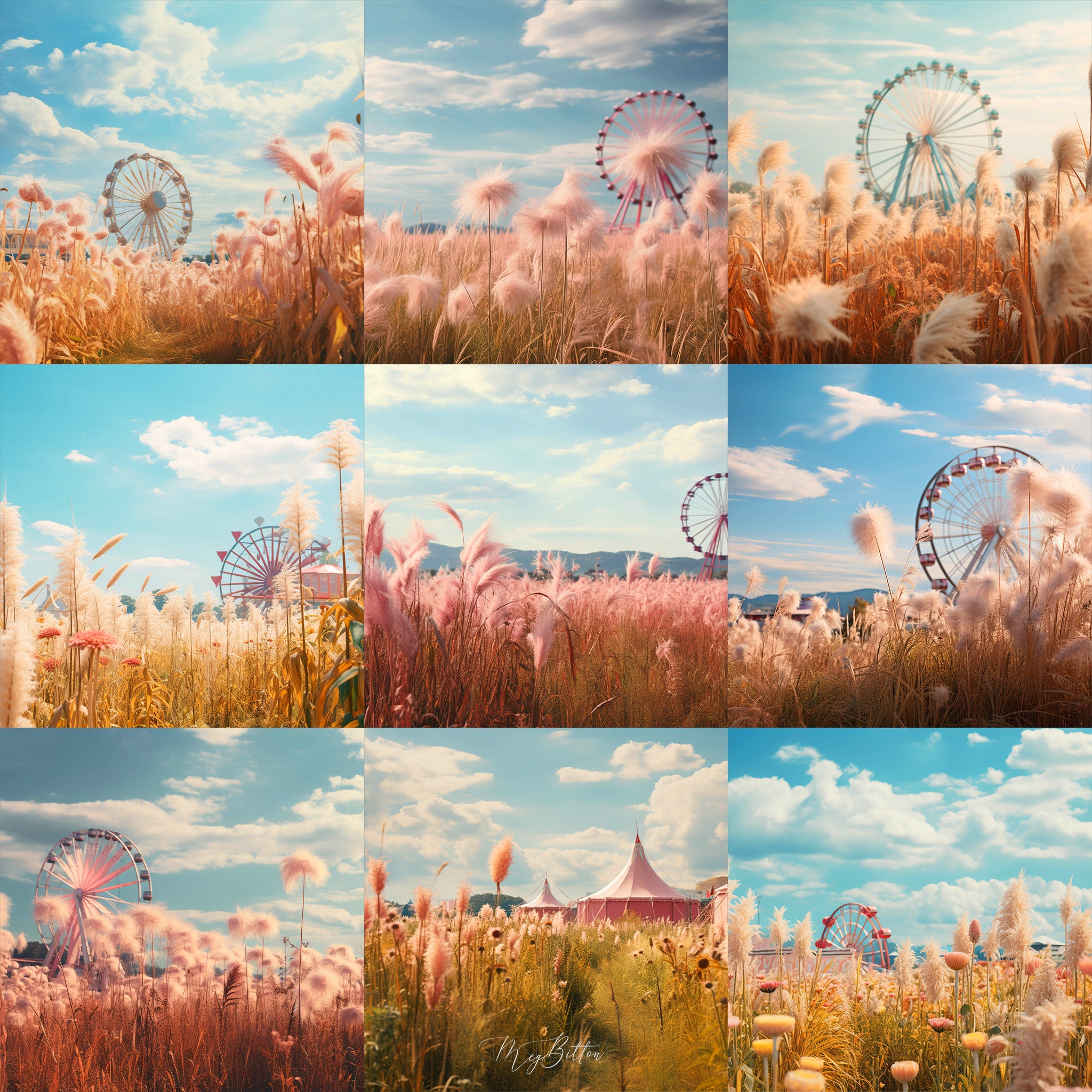 The Whimsical Carnival Field Background Bundle offers photographers 9 stunning, whimsical digital backgrounds. Each background captures the enchanting essence of a carnival field, adding a magical touch to your photos. Perfect for creative photo shoots, this bundle transforms ordinary images into extraordinary, captivating scenes. Enhance your photography with these beautifully designed backgrounds.