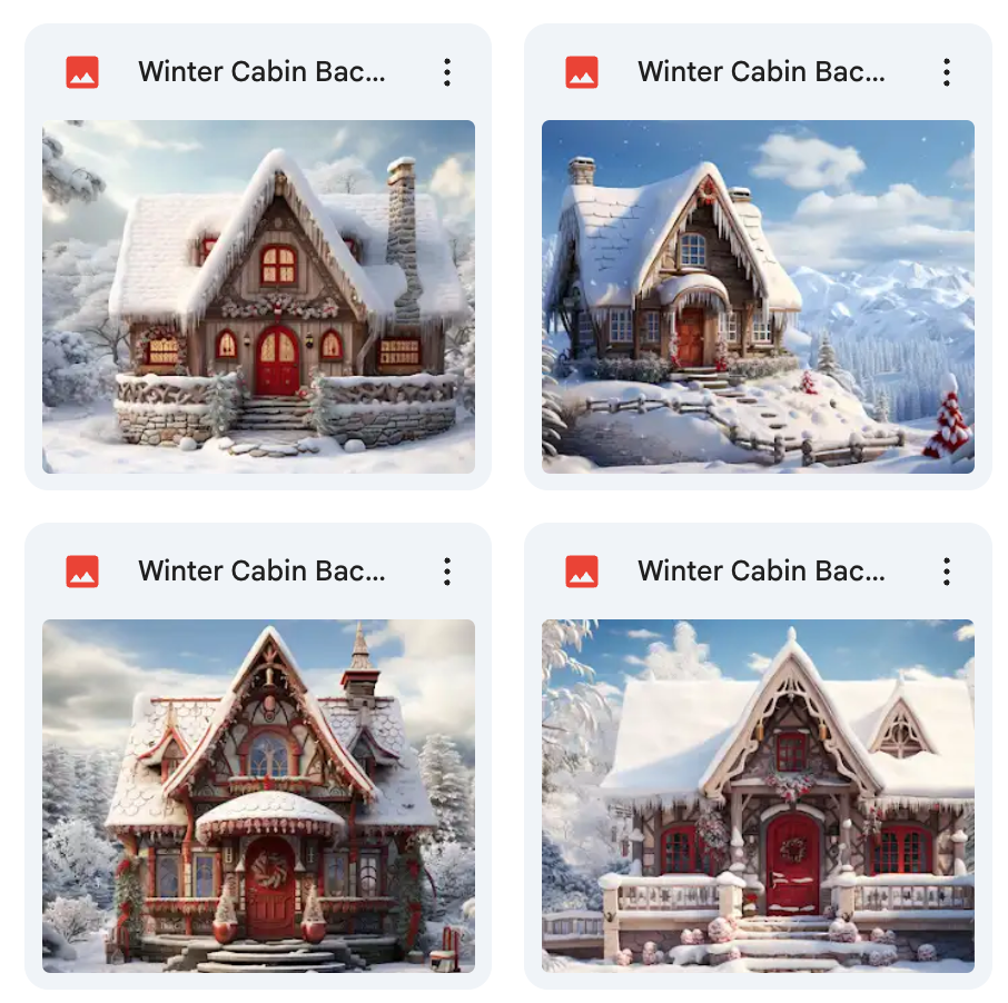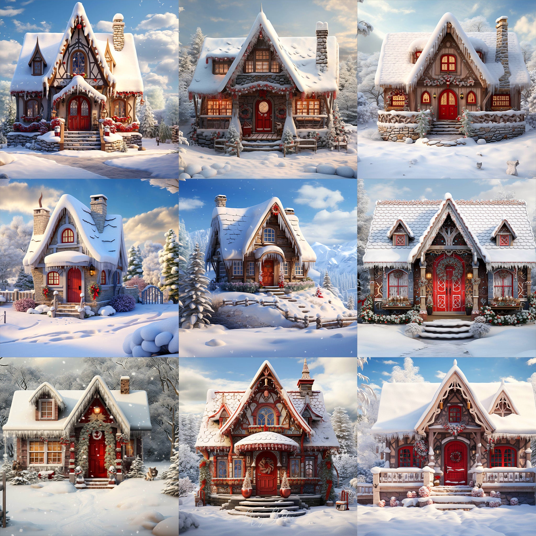 Nine Unique Backgrounds: Each image captures the charm and tranquility of winter cabins, providing a versatile selection for different compositions.