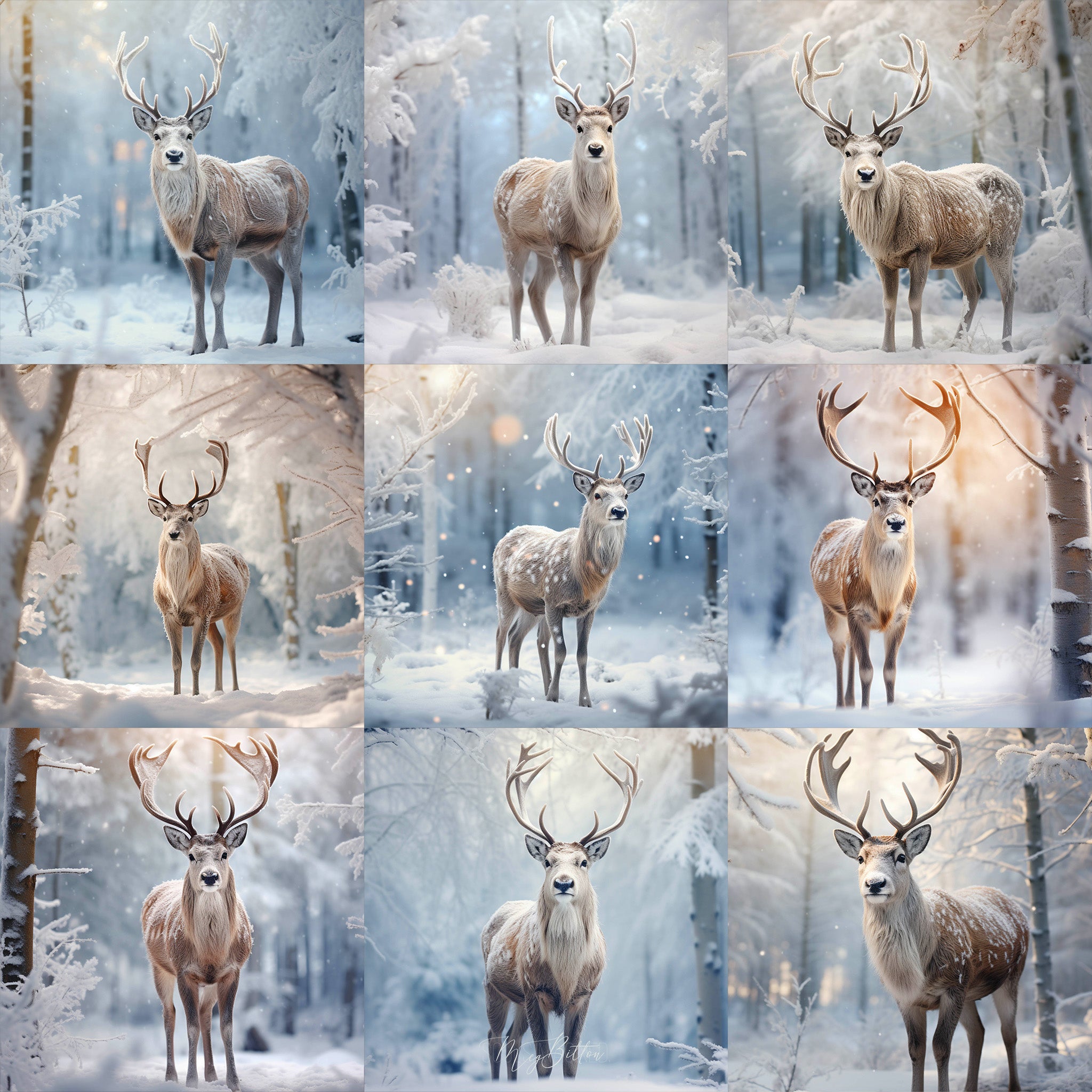 Transform your holiday photography with the enchanting Winter Reindeer Background Bundle. This collection features 9 high-quality digital backgrounds, each capturing the serene beauty of winter landscapes with charming reindeer scenes. Perfect for adding a magical touch to your creative projects, these backgrounds are ideal for photographers looking to elevate their seasonal work.